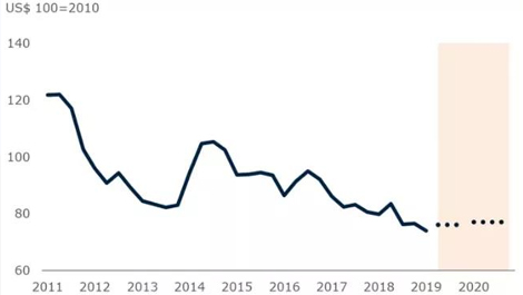 根據(jù)世界銀行的預(yù)測(cè),飲料價(jià)格指數(shù)在2019年下降5%之后,預(yù)計(jì)2020年將上升2%。世界銀行在11月將飲料價(jià)格的經(jīng)濟(jì)預(yù)測(cè)進(jìn)行了上調(diào),并預(yù)測(cè)下降趨勢(shì)將在2020年穩(wěn)定下來。世界銀行飲料指數(shù)